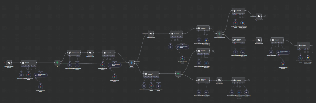 A sophisticated conversational AI system designed for real estate agencies that intelligently classifies customer inquiries, manages appointment scheduling, and provides contextual responses—all through natural language interactions. Built on n8n’s workflow automation platform, this solution demonstrates the practical application of AI agents in streamlining customer service operations.